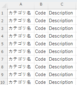→補足情報の出力は行われず、CSVファイルにはCodeの値のみ出力されます。