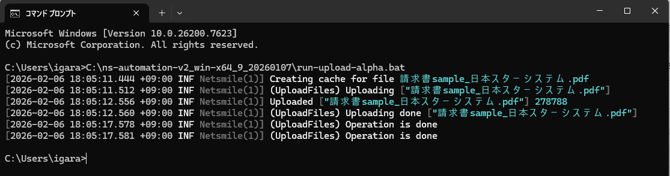 3:コマンドプロンプト上に「run-upload-alpha.bat」をドラッグし実行