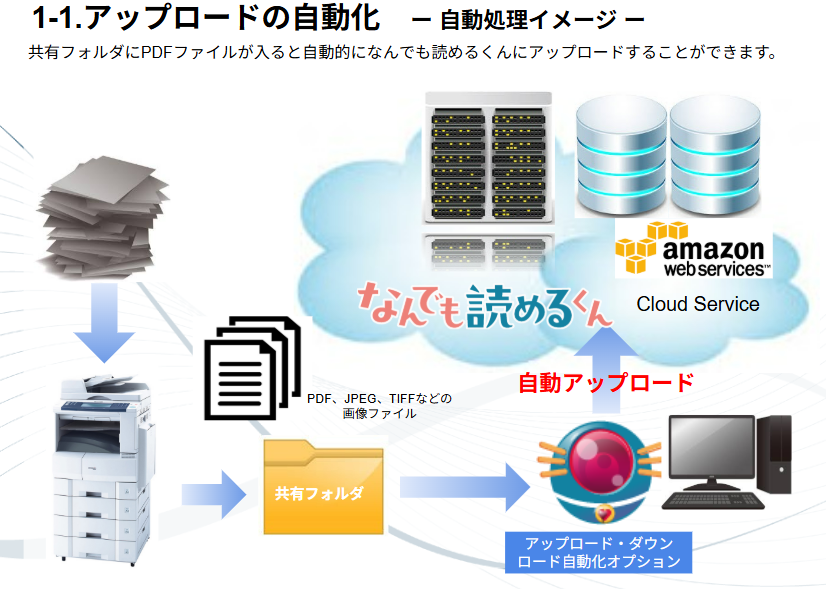 指定フォルダにある帳票画像データを自動でアップロードします。