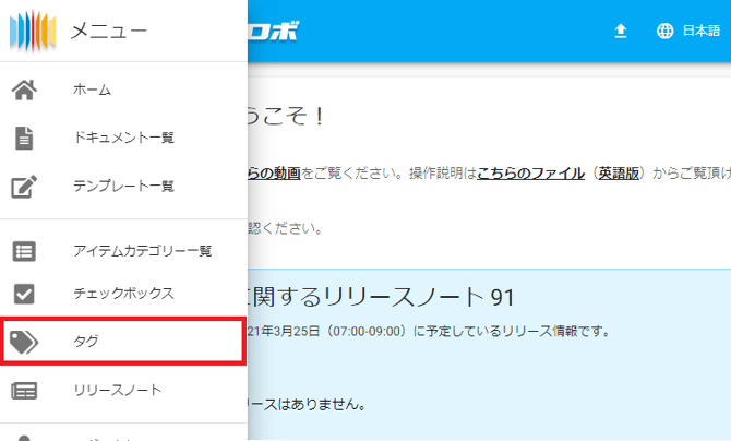 →ドキュメント/テンプレートにタグを追加して保存した場合、