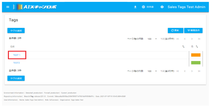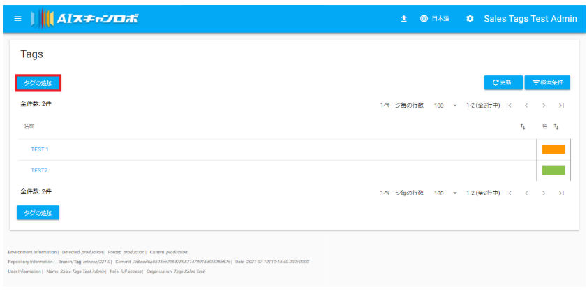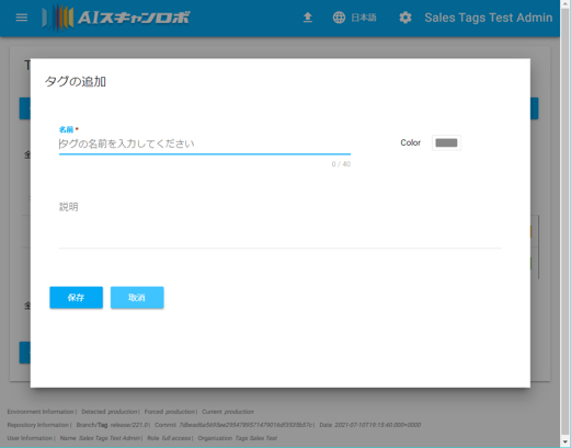 新規のタグを作成、作成したタグの管理はAIスキャンロボの画面より行います。