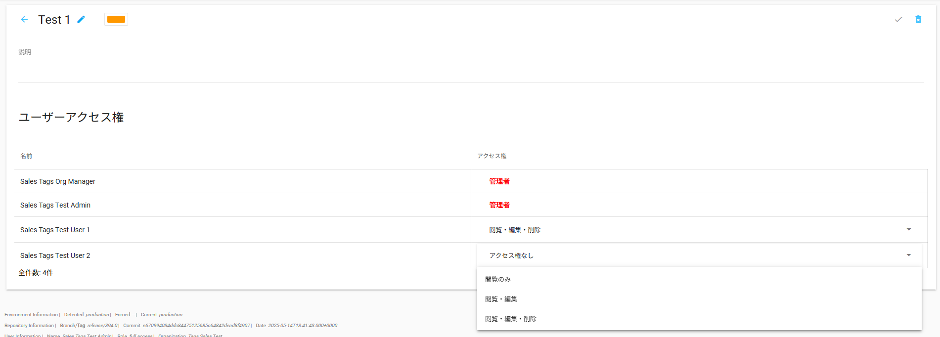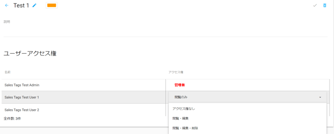 タグの名称をクリックするとユーザーの一覧が表示され、各ユーザーごとにアクセス権限を