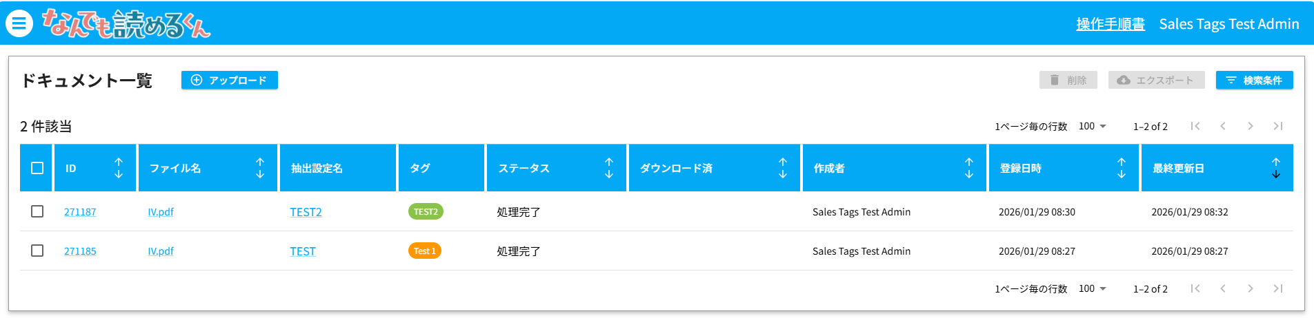 アカウントに付与されたタグと同一のタグを持つドキュメント・抽出設定のみを閲覧・編集・削除することができるようになります